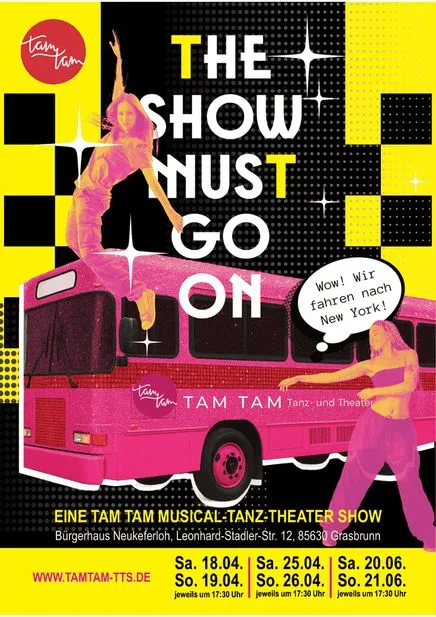 „The show must go on“ ist eine komödiantische Theater-Musical-Tanz-Show mit über 300 Teilnehmenden aller Alters- und Leistungsstufen von TamTam. Choreografin Aiga Keller-Ginsberg bringt Anfänger und Profis zusammen, um gemeinsam das Jubiläum zu feiern.