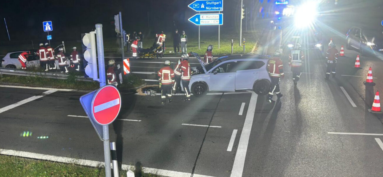 Die Feuerwehr Grasbrunn wurde Freitag Nacht, am 31. Oktober um 23.38 Uhr, zu einem Verkehrsunfall auf der B304, Höhe der Autobahneinfahrt Richtung Nürnberg, alarmiert. Zwei Fahrzeuge waren dort beim Abbiegevorgang beziehungsweise Geradeausfahren zusammengestoßen.
