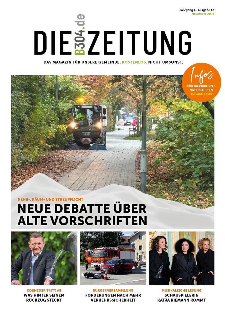 Tagesaktuelle Nachrichten finden Sie auf B304.de. Die B304.de Zeitung informiert monatlich unabhängig über die wichtigen Themen aus den Gemeinden Vaterstetten und Grasbrunn.