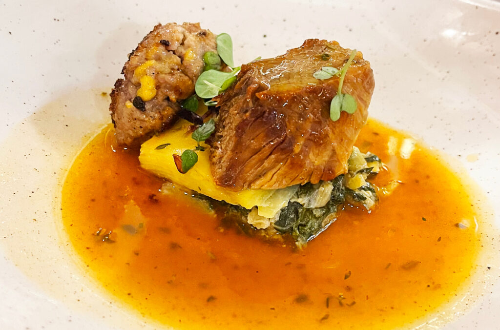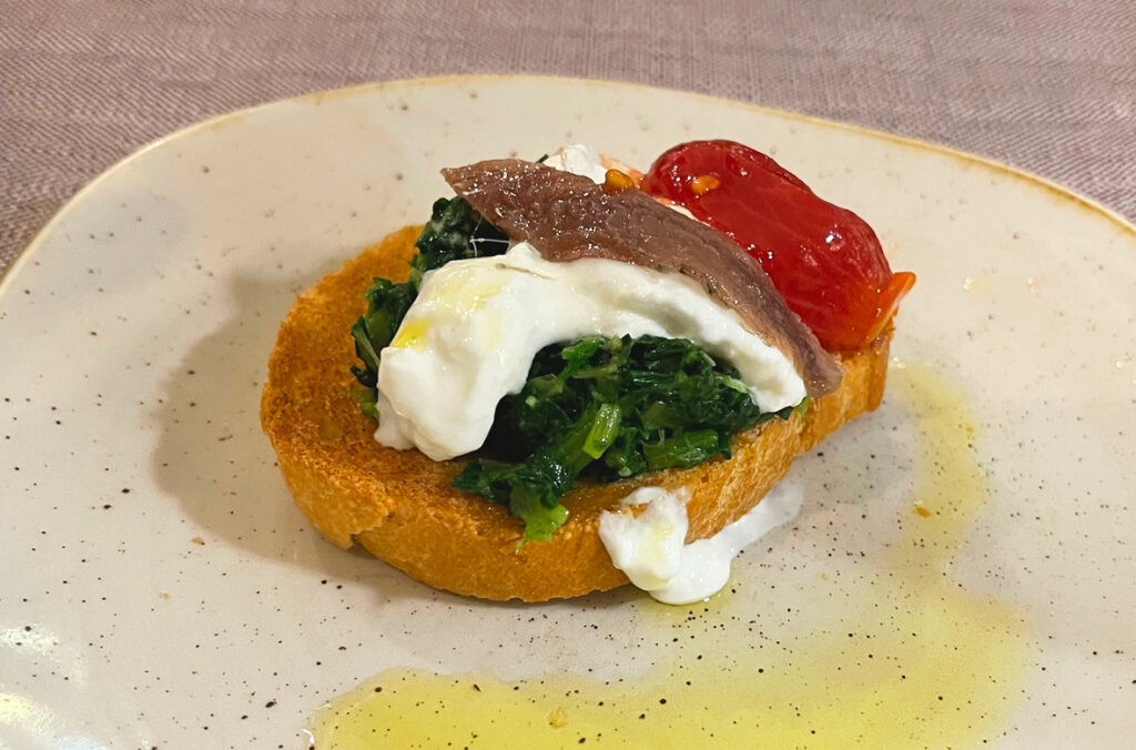 „Zu dritt mehr als ein Jahrhundert italienische Kochkunst“ – so schrieb es Domenico „Mimmo” Pace, Gastgeber und Chef des Restaurants Da Mimmo in Baldham, in einem kurzen Grußwort zu seinem Menü „Cucina Tricolore”. Zusammen mit seinen Kochfreunden Piero Lamanna (Foto Mitte) und Cosimo „Mimmo” Ruggiero (Foto links) entstand am Nikolausabend ein 6-gängiges Menü, das ihre jahrelange Freundschaft feiern sollte und sich wie eine kulinarische Reise durch gemeinsame Erinnerungen zog. Jeder Gang trug die Handschrift eines anderen, aber in Kombination entstand ein stimmiges Ganzes: traditionell, handwerklich präzise, mit einer Wärme, die man nicht spielen kann – sie entsteht nur, wenn Menschen sich wirklich etwas zu sagen haben.