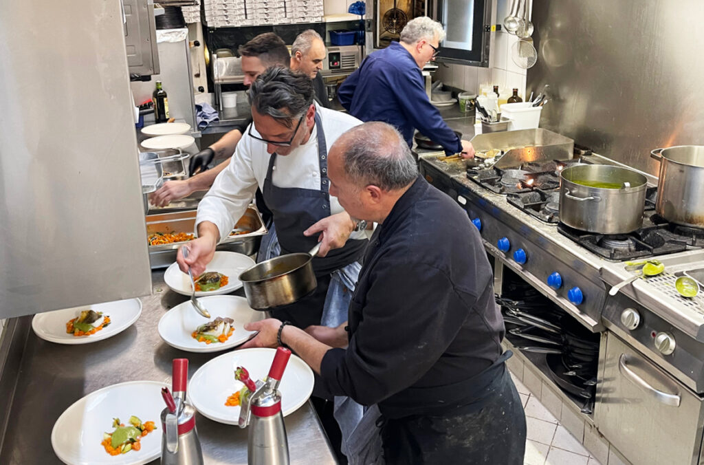 Piero und Mimmo verloren sich nie ganz aus den Augen, auch wenn ihr Weg sie durch verschiedene Küchen führen sollte. Nach Stationen unter anderem im Da Pippo in Bogenhausen – heute das beliebte Aquarello von Mario Gamba – lernte Mimmo den „zweiten Mimmo”, Mimmo Ruggiero kennen. Der hatte für sein Hippocampus sogar – als erster Italiener in München – einen Michelin-Stern bekommen und wurde für Pace zum zweiten Lehrmeister. „Er zeigte mir, was es bedeutet, mit allen Sinnen zu kochen und Kochen auf höchstem Niveau als Gesamtkunstwerk zu sehen.” Dann, 1994, zog es Mimmo schließlich nach Baldham: Im „Da Nerone”, wie das heutige “Da Mimmo” vormals hieß, wurde er endlich sein eigener Chef. Und ist es bis heute.
