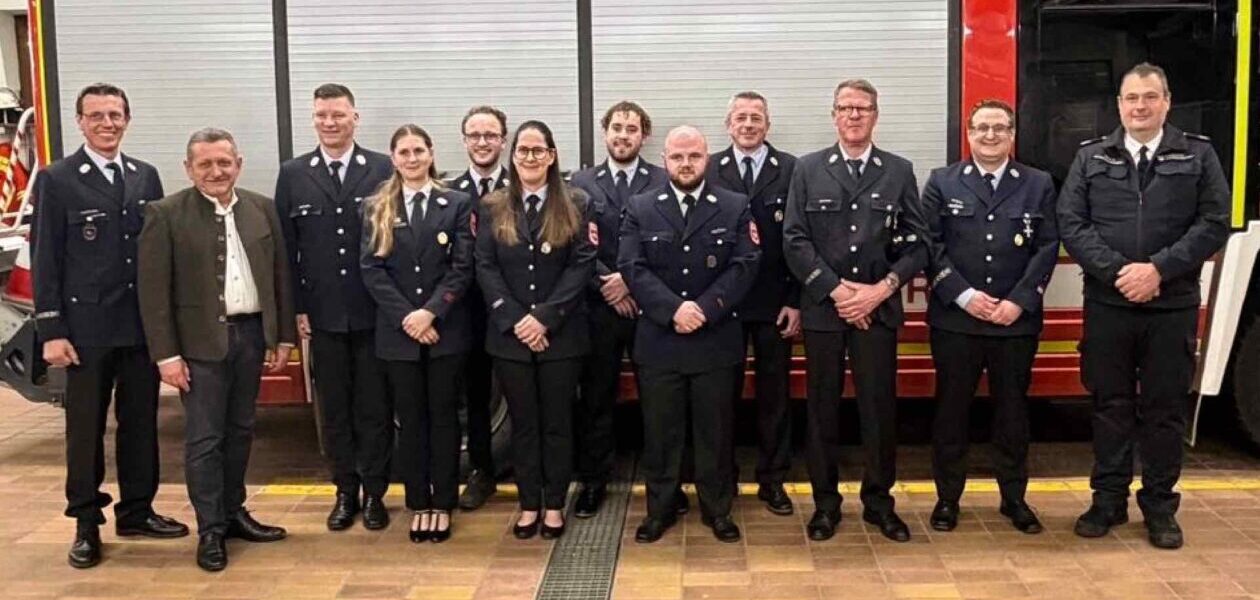Im Rahmen der Versammlung wurden mehrere Mitglieder befördert: Annabel Bräuninger zur Feuerwehrfrau, Ben Olma zum Feuerwehrmann, Andreas Bitzer zum Hauptfeuerwehrmann, Georg Schachtner zum Löschmeister und Philipp Zweck zum Oberlöschmeister.