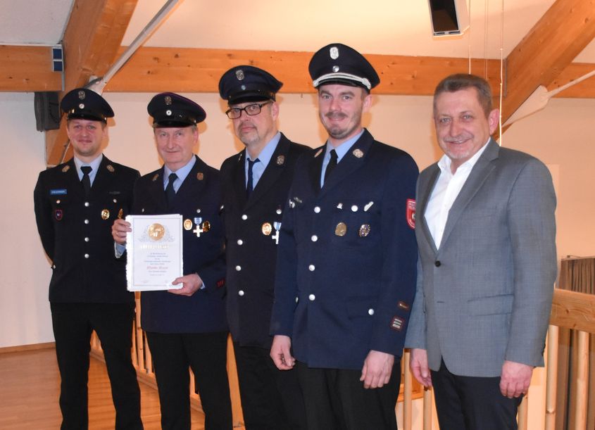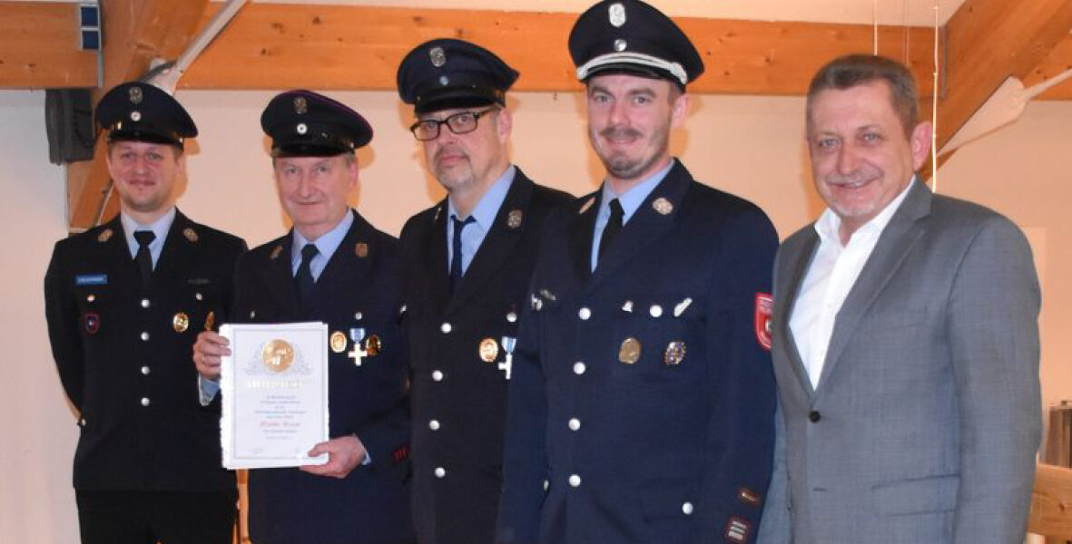 Es folgten Beförderungen sowie Ehrungen für langjährige Mitgliedschaften. Grasbrunns Bürgermeister Klaus Korneder nahm letztmalig offiziell an einer Jahreshauptversammlung der Feuerwehr teil. In seinen 18 Amtsjahren habe er nur zweimal gefehlt. Er dankte der Feuerwehr im Namen der Gemeinde für ihren verlässlichen Einsatz und bestätigte die Überweisung des Feuerwehrzuschusses. Anschließend überreichte er Mathias Mende die goldene Feuerwehrmedaille für 35 Jahre Dienst sowie Martin Mayer eine Urkunde für 45 Jahre Mitgliedschaft.