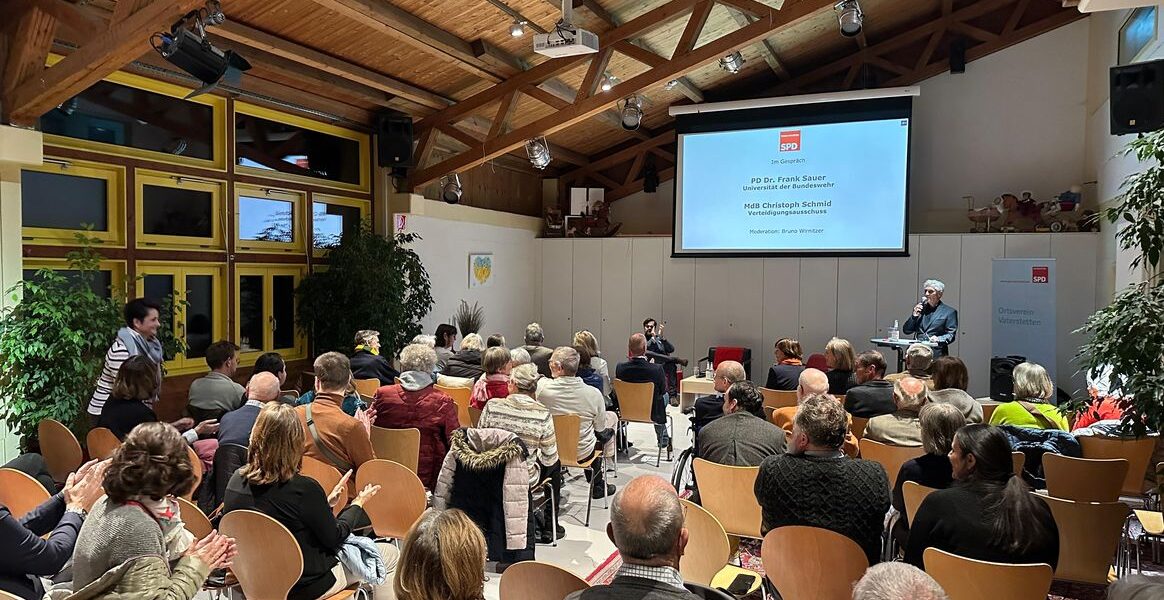Bei vollem Haus fand am Freitagabend (24. Oktober) im OHA! das 33. Vaterstettener Friedensgespräch statt. Unter dem Titel „Wehrpflicht, Aufrüstung, Diplomatie – wie sichern wir den Frieden?“ diskutierten der SPD-Bundestagsabgeordnete Christoph Schmid, stellvertretender Vorsitzender des Verteidigungsausschusses, und Priv.-Doz. Dr. Frank Sauer von der Universität der Bundeswehr München über aktuelle sicherheitspolitische Herausforderungen.