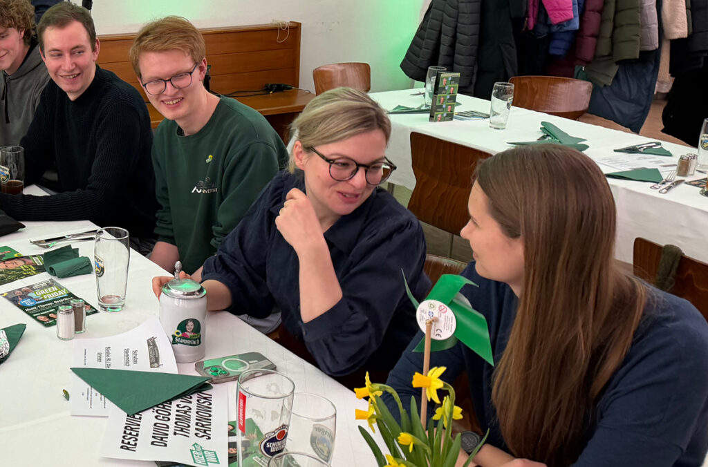 Wir sind 32 Abgeordnete im Bayerischen Landtag und kommen aus allen Regionen Bayerns, nicht nur aus den Städten. Wir sind sehr viel im ganzen Land unterwegs. Denn es braucht mehr Räume, wo Menschen mit und über Politik sprechen können. Dafür gibt es auch „Schulzes Stammtisch“. Das ist keine klassische Politikveranstaltung. Also ich stehe nicht da vorne auf einer Bühne und referiere anderthalb Stunden, wie großartig die Grünen sind und dass man uns doch wählen kann. Wir gehen von Tisch zu Tisch und wir ratschen miteinander. Über das, was die Leute wirklich ganz unmittelbar bewegt. Dieses Format bringe ich in Städte, kleine und mittelgroße Orte in ganz Bayern, denn wir müssen Orte schaffen, wo wir uns wieder begegnen können. Das ist uns in der Gesellschaft insgesamt ein Stück weit verloren gegangen – und es ist unsere Verantwortung, solche Räume wieder zu schaffen.