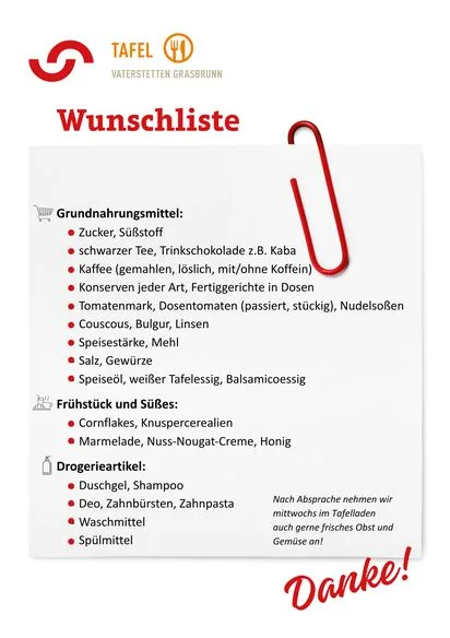 Frische Produkte wie Milch, Wurst oder Aufschnitt müssen regelmäßig zugekauft werden, wenn Spenden nicht ausreichen. Zudem entstehen laufende Kosten für Transport, Kühlung, Lagerung und Organisation. Auch das Tafel-Fahrzeug und die notwendige Infrastruktur werden über Spenden finanziert.