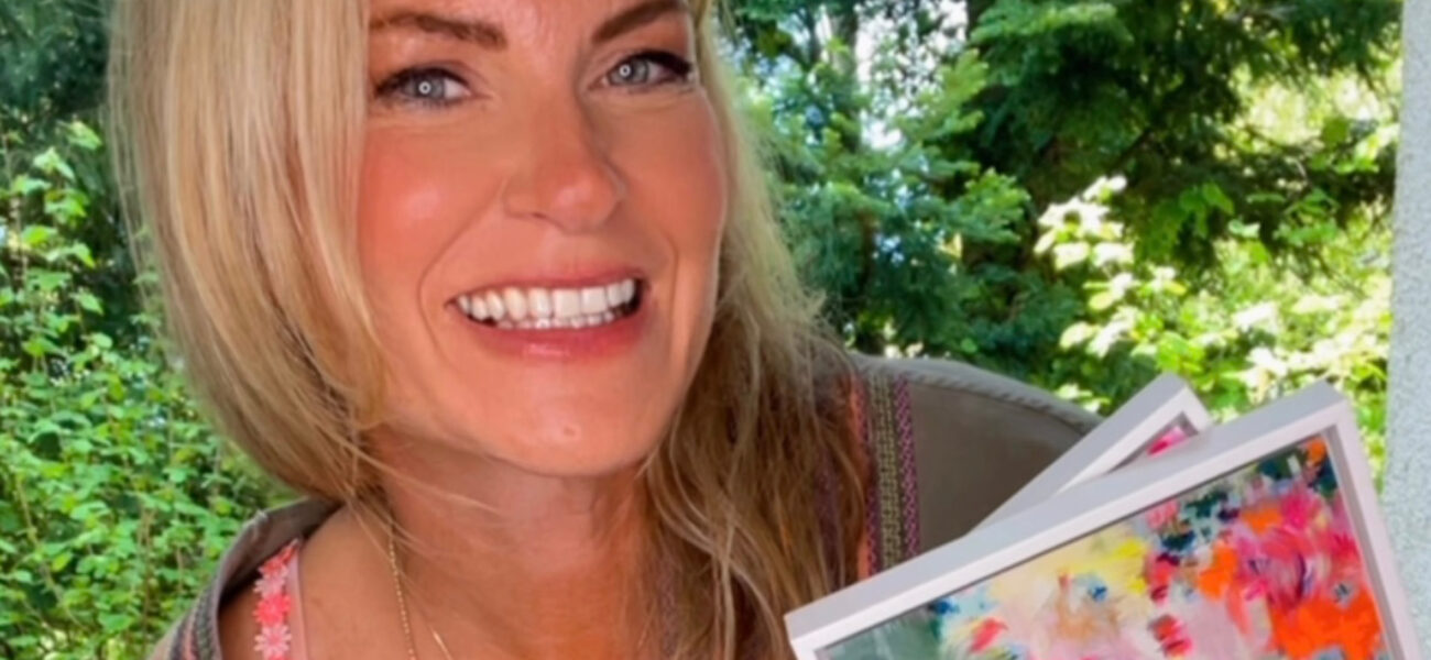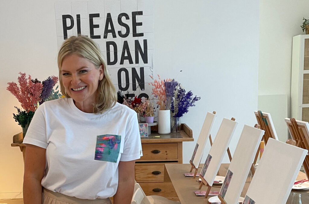 Heute ist Tina Heller selbstständig, als Künstlerin und Designerin. Ihre kunterbunten Leinwände hingen zunächst „nur” bei ihrer Mutter im Büro einer Steuerkanzlei – und wurden bald zum Eye Catcher für Mandanten, die dort ein und aus gingen. Damals wie heute stehen Tinas leuchtende Kunstwerke für Lebensfreude und ein gewisses Augenzwinkern, und wenn man lange genug hinsieht, scheinen die Farben umherzuwirbeln und zu tanzen. „Als Künstler offenbart man auch automatisch etwas von sich”, findet die 45jährige. „Ich könnte nie etwas in schwarz malen. Wenn ein Tag mal grau ist, dann denke ich mir: Jetzt erst recht!”