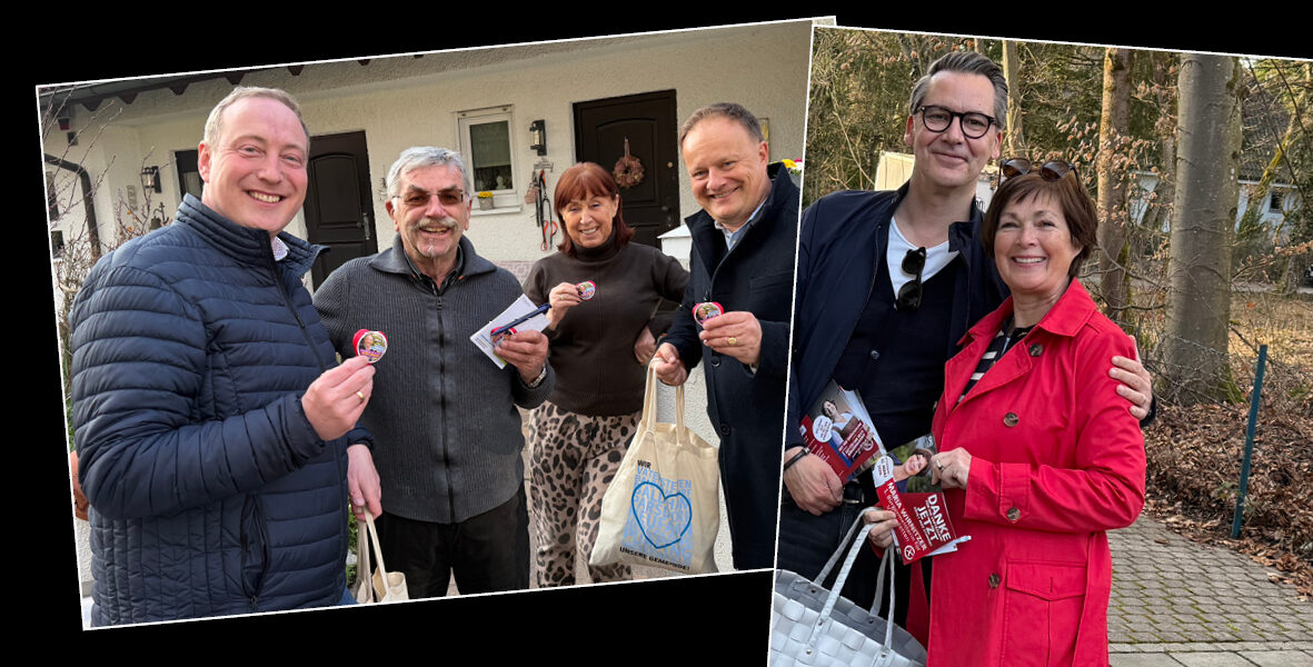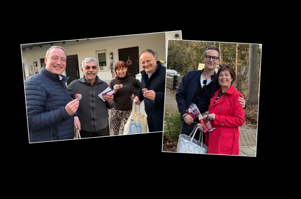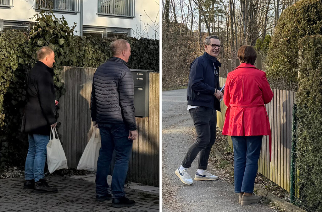 Die Politik rennt den Menschen dieser Tage buchstäblich die Türen ein. Denn: An diesem Sonntag geht es für Vaterstettens Bürgermeister Leonhard Spitzauer (CSU) und dessen Herausforderin Maria Wirnitzer (SPD) um alles oder nichts. Gelingt Spitzauer die Wiederwahl, oder wird er bereits nach sechsjähriger Amtszeit von dessen Stellvertreterin abgelöst. 8.332 Briefwahlunterlagen wurden bereits verschickt. Der Wahlausgang dürfte – wie bereits 2020 – denkbar knapp werden. Deshalb sind die Kandidaten dieser Tage im Gemeindegebiet unterwegs – bewaffnet mit Schokoherzen und -marienkäfern, Flyern und natürlich einem ganz besonders freundlichen Lächeln. Wenn es also bei Ihnen plötzlich an der Haustür klingelt, könnten das Wahlkämpfer sein. Tür-zu-Tür-Wahlkampf wirkt. Das ist wissenschaftlich bewiesen. Dabei geht es weniger um Inhalte, als um Sympathie. B304.de hat beide Kandidaten bei einer Tour begleitet.