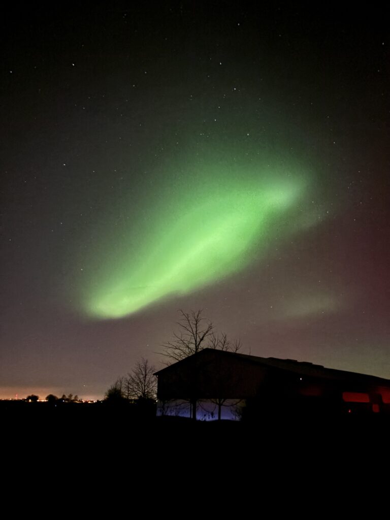 Am heutigen Abend (19. Januar), konnte man bei uns ein seltenes Himmelsschauspiel erleben: Bunte Polarlichter leuchteten am Abendhimmel. Die Bedingungen dafür waren außergewöhnlich gut, sodass die Lichter über mehrere Stunden hinweg sichtbar waren – von etwa 18 bis 23 Uhr, besonders gut bei wenig Umgebungslicht. Auch in den frühen Morgenstunden zum Dienstags (20. Januar), gibt es nochmals eine Chance auf dieses Naturerlebnis. Zwischen 5.30 Uhr und 6.40 Uhr können aufmerksame Beobachter erneut schimmernde Lichtbögen am Himmel entdecken.