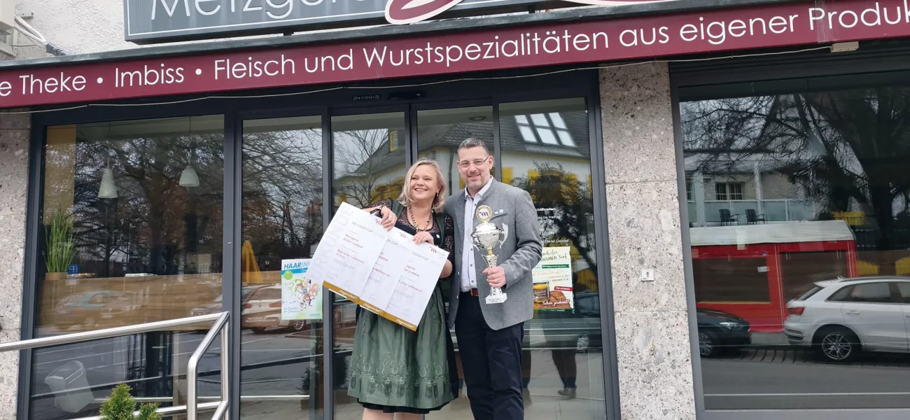 Im Rahmen einer großen Festveranstaltung in der Stadthalle Neusäß hat der Fleischerverband Bayern die Preisträger des Metzger Cups 2025/2026 ausgezeichnet. Zu diesen gehörte erneut die Metzgerei Liebold aus Haar, die den begehrten Pokal sowie die Auszeichnungsurkunden für ihre Produkte: Münchner Weißwürste / Bayerischer Leberkäse / Bayerischer Leberkäse im Glas erhielt.