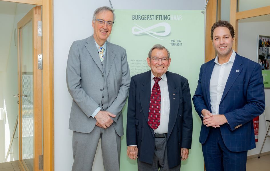 Jürgen Partenheimer übergibt den Vorstandsvorsitz der Bürgerstiftung an Dr. Alexander Zill. Für viele Haarerinnen und Haarer ist Jürgen Partenheimer das Gesicht der Bürgerstiftung. Seit ihrer Gründung stand er an der Spitze des Vorstandes und kann auf fünfzehn erfolgreiche Jahre zurückblicken. Nun, mit 88 Jahren, gibt er sein Amt ab – der Stiftung bleibt er weiterhin als Ehrenvorsitzender verbunden. Sein Nachfolger ist Dr. Alexander Zill, in Haar auch bestens bekannt.