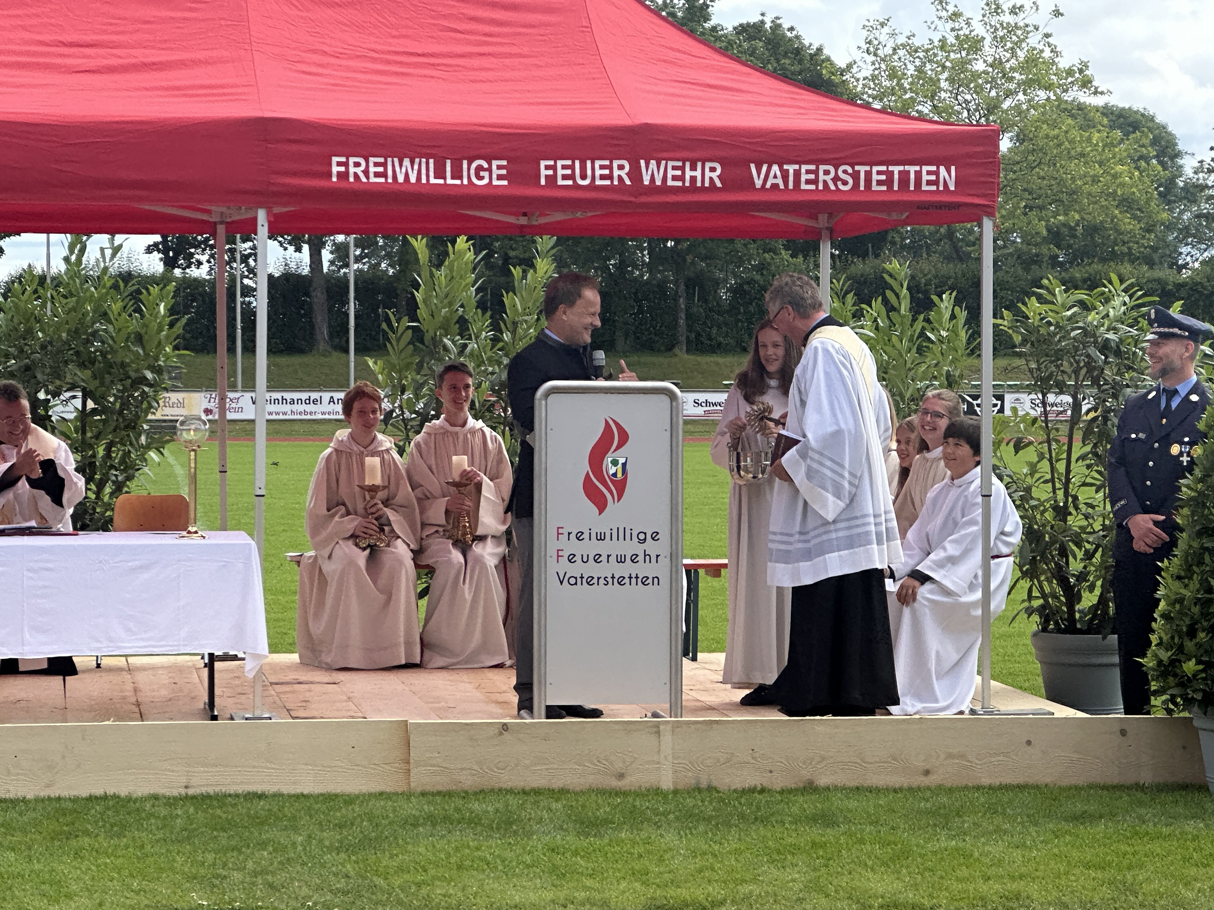 Die Freiwillige Feuerwehr Vaterstetten feierte am Sonntag ihr 150-jähriges Bestehen. Gleichzeitig richtete sie den 148. Kreisfeuerwehrtag aus. Höhepunkt war ein ökumenischer Gottesdienst im Stadion.