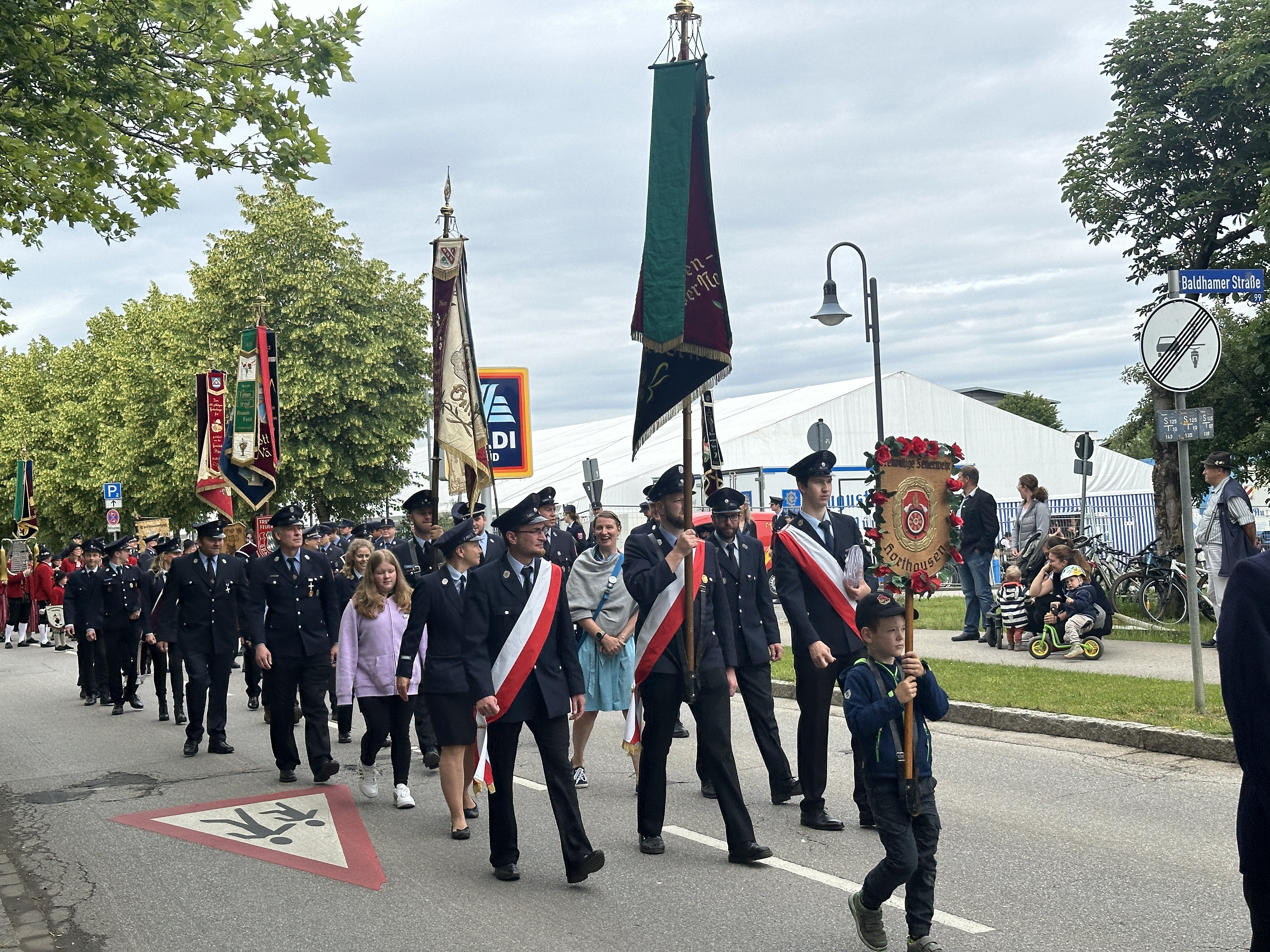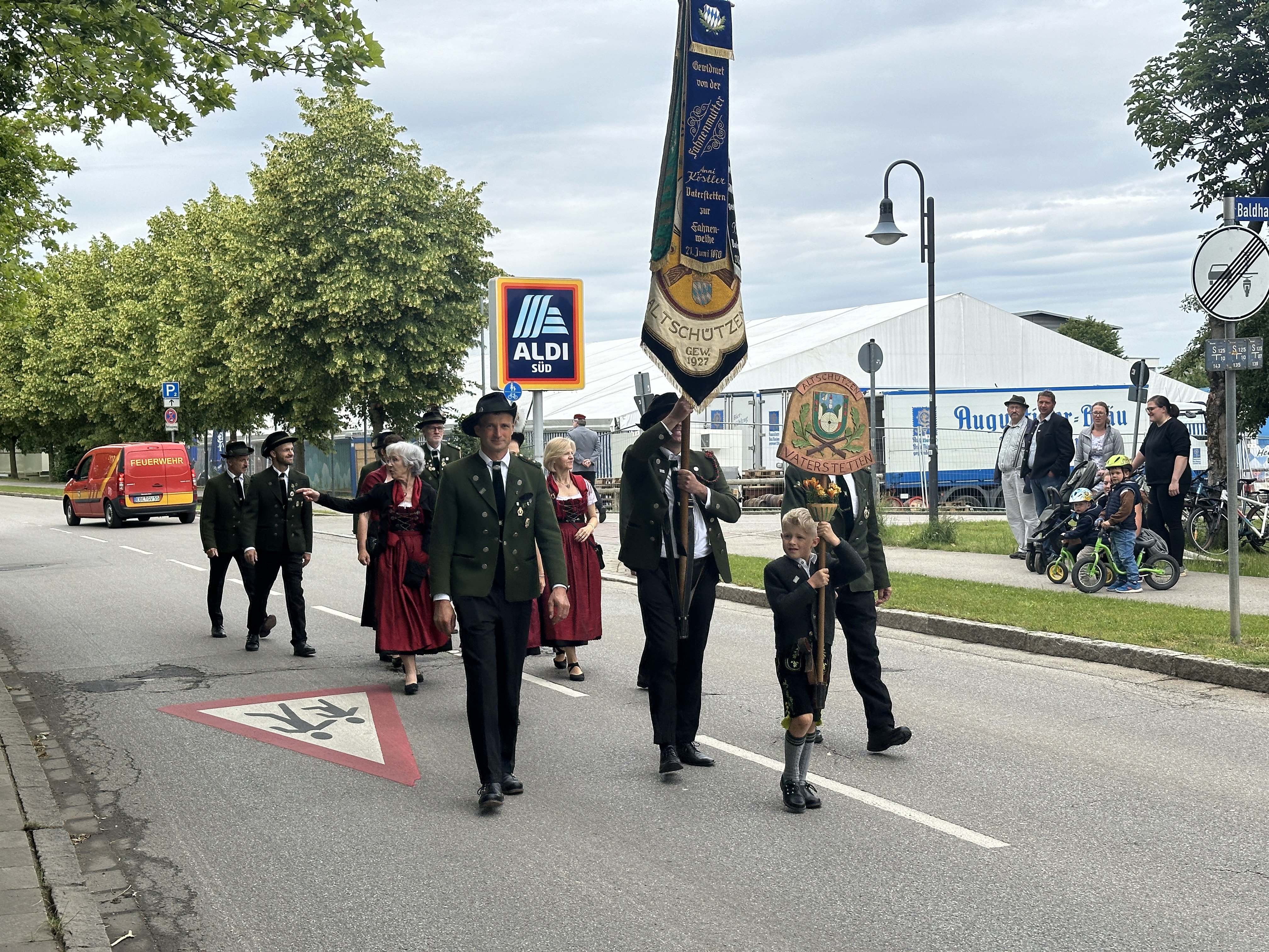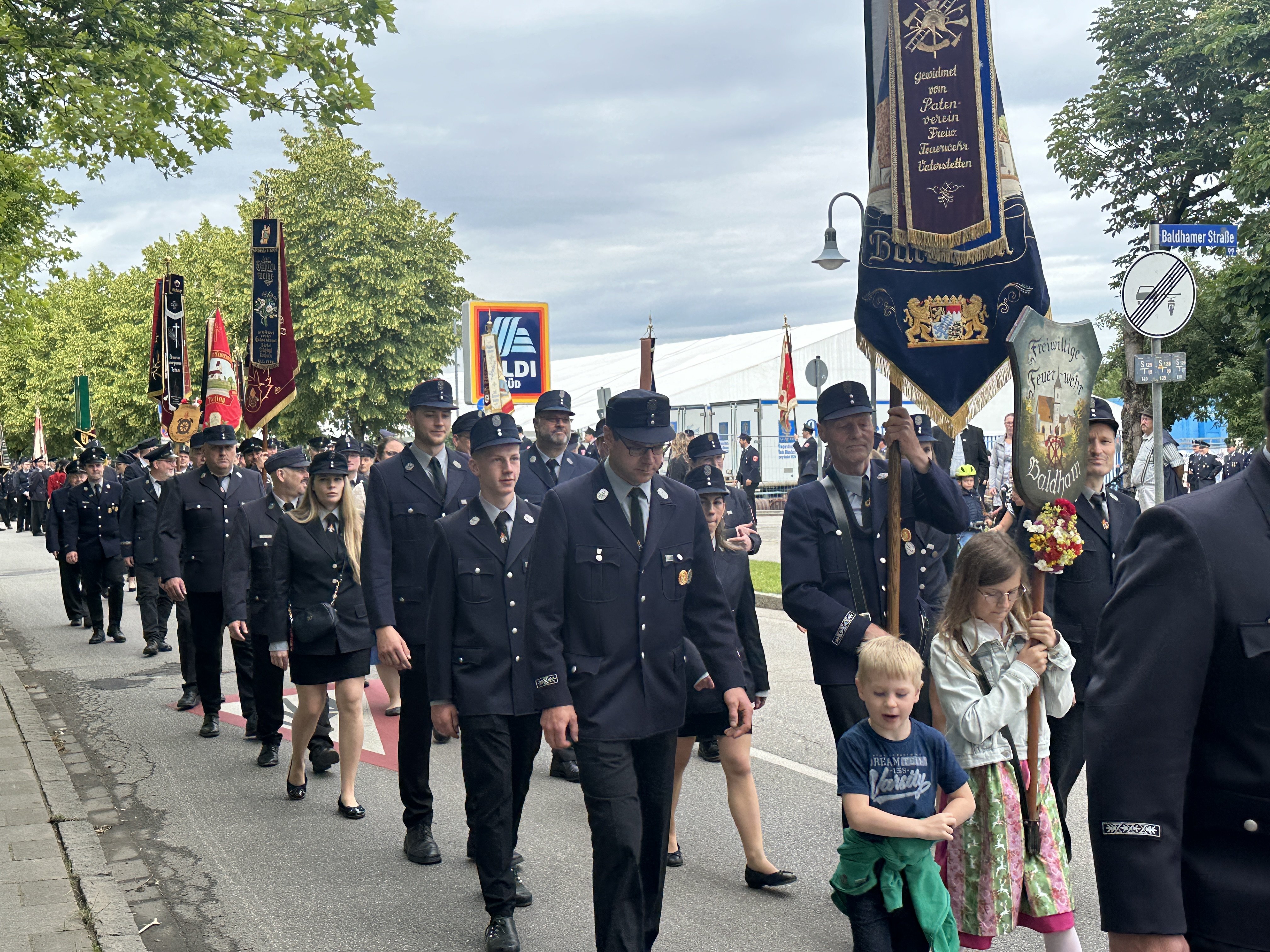 Eingeladen waren neben Feuerwehren aus dem ganzen Landkreis sowie der Kreisbrandinspektion auch die Feuerwehren Grasbrunn und Harthausen sowie weitere Organisationen wie Polizei und THW. Auch die Dirndlschaft, der Burschenverein, der Krieger- und Soldatenverein und die Altschützen aus Vaterstetten waren dabei. Zu den Ehrengästen zählten neben dem Landrat Robert Niedergesäß der Vaterstetettener Bürgermeister Leonhard Spitzauer, Altbürgermeister Georg Reitsberger sowie der Gemeinderat.