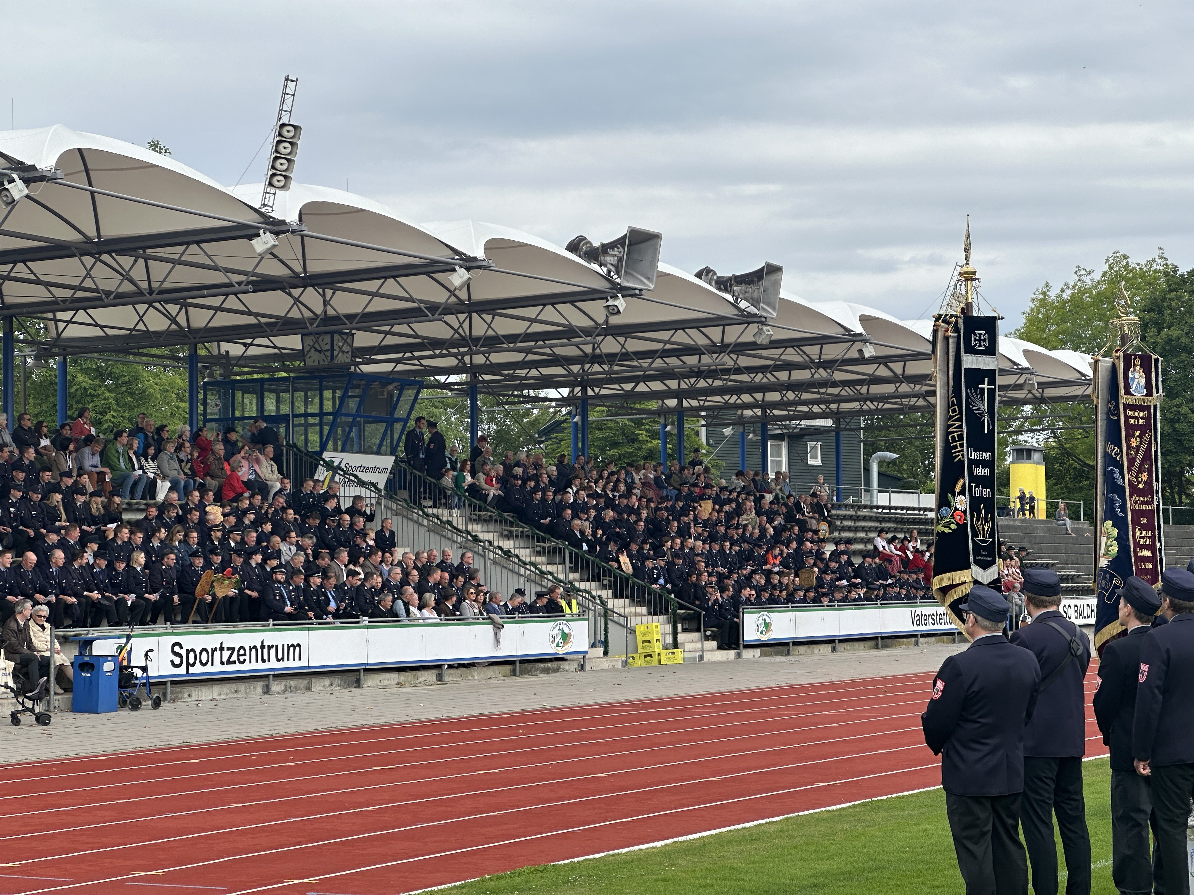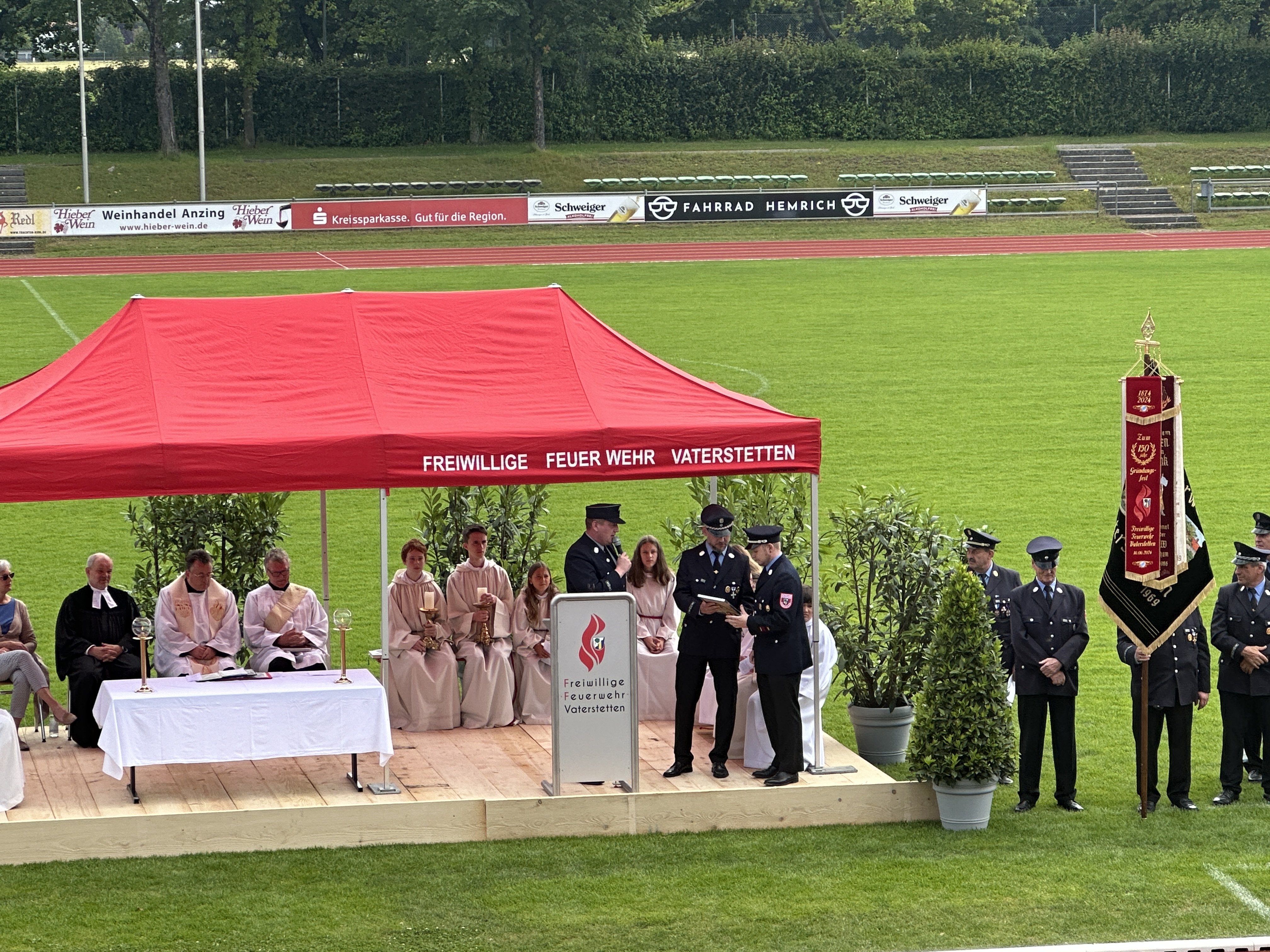 Die Freiwillige Feuerwehr Vaterstetten feierte am Sonntag ihr 150-jähriges Bestehen. Gleichzeitig richtete sie den 148. Kreisfeuerwehrtag aus. Höhepunkt war ein ökumenischer Gottesdienst im Stadion.