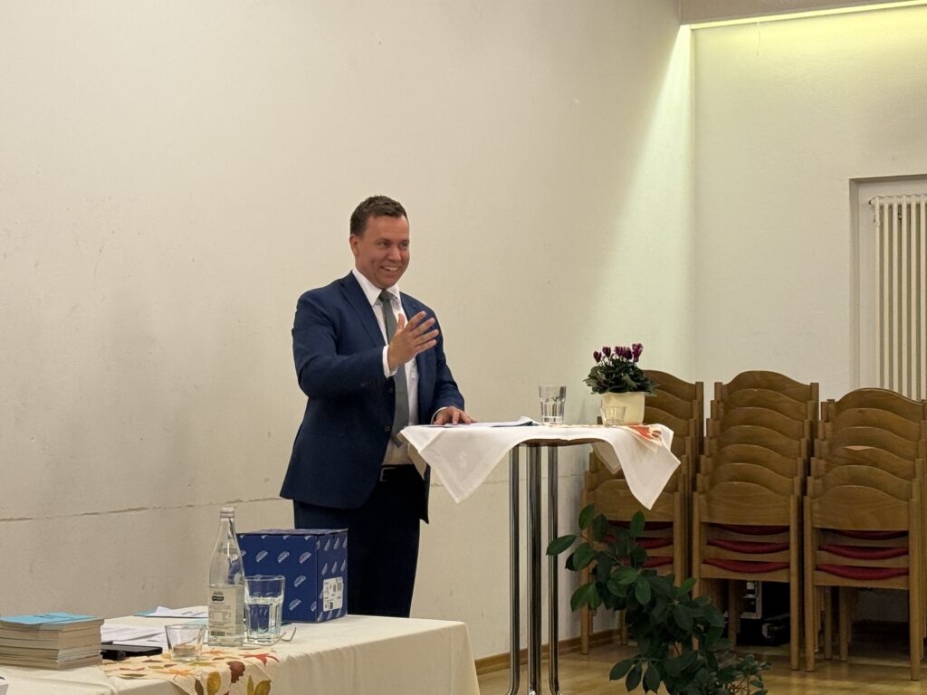 Für Stüwe sei es eine „große Ehre“, von gleich zwei Ortsverbänden für das Amt vorgeschlagen und unterstützt zu werden, erklärte der 40-Jährige, der seit 2012 in Grasbrunn lebt. Seitdem ist er Kämmerer und damit Chef der Finanzverwaltung. Er kenne die Finanzen, Strukturen und Herausforderungen der Verwaltung aus erster Hand. Nachdem er Grasbrunn in diesen 13 Jahren „kennen und schätzen gelernt“ habe, sei in ihm der Wunsch gewachsen, mehr Verantwortung zu übernehmen. In seiner Rede betonte er: Er sei kein Politiker, sondern Verwaltungsspezialist – „ein Macher, kein Redner“.