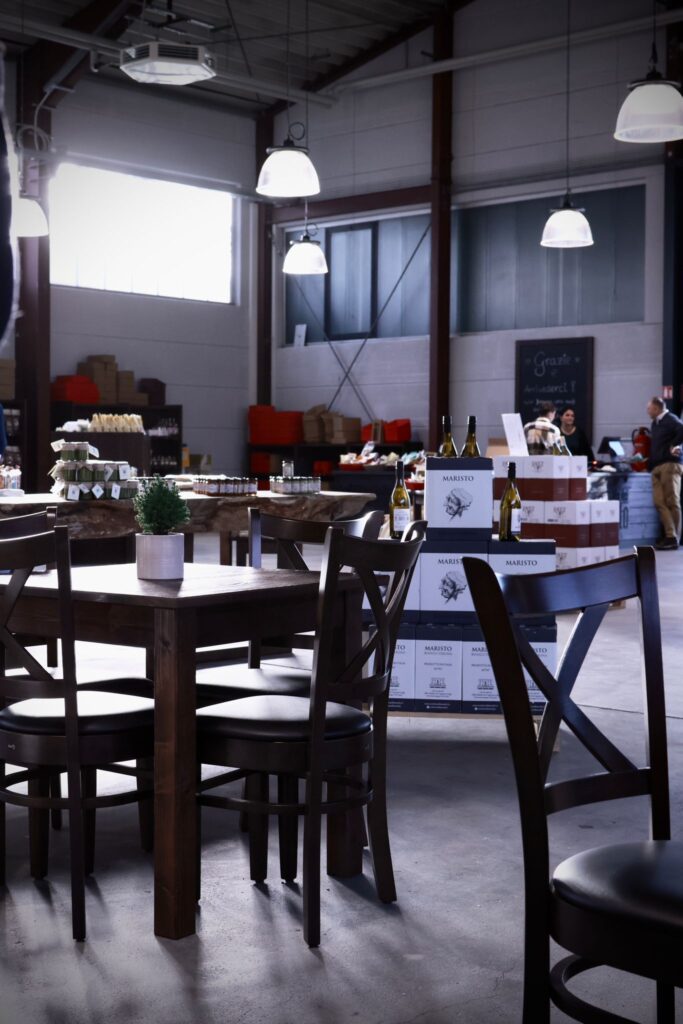 Wer den Laden betritt, kommt nicht umhin, die Produkte zu verkosten: Ein kleines Glas Prosecco oder Weißwein gehört hier zum Einkaufserlebnis dazu. Die Frischetheke, die jeden Donnerstag beliefert wird, bietet Mortadella, Salami, Parmigiano Reggiano, Pecorino, luftgetrockneten Schinken und weitere italienische Spezialitäten – alles offen präsentiert, sodass sich die Kundinnen und Kunden selbst ein Bild von Geschmack, Konsistenz und Qualität machen können. Auch Pestos, eingelegte Oliven oder Antipasti stehen zum Probieren bereit.