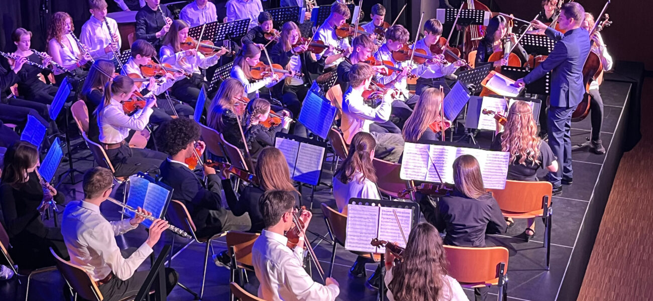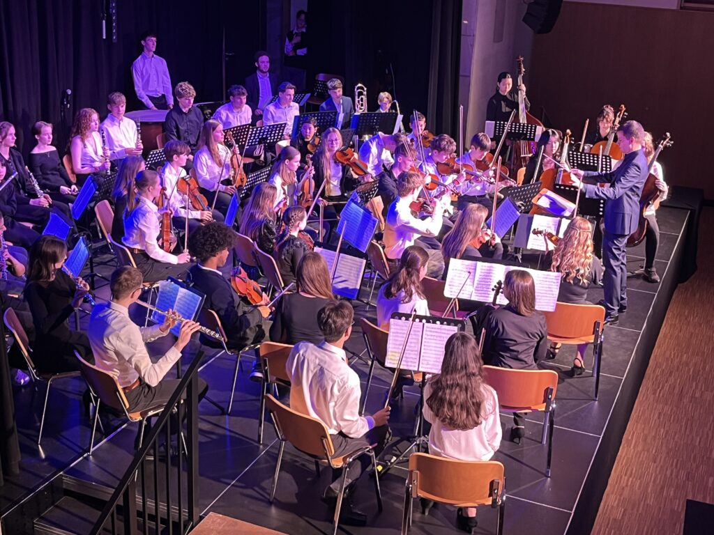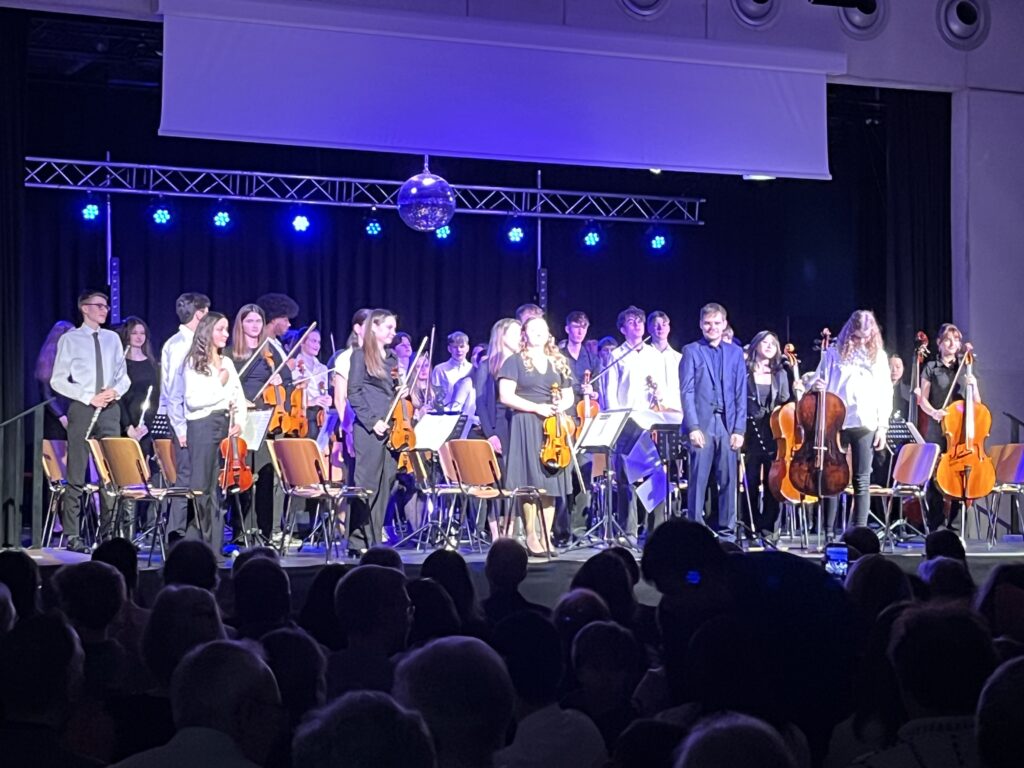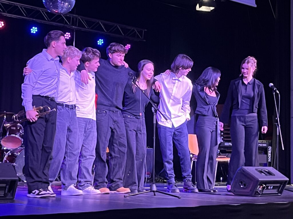 Zum Ende des Konzerts wurde es noch einmal richtig voll auf der Bühne: Das Schulorchester unter der Leitung von Philipp Walter präsentierte Bedřich Smetanas „Die Moldau“ und sorgte für einen klanggewaltigen Höhepunkt. Gemeinsam mit dem Publikum wurde anschließend das Weihnachtslied „Tochter Zion“ gesungen – ein stimmungsvoller Abschluss, der Gemeinschaft und Weihnachtsfreude spürbar machte.