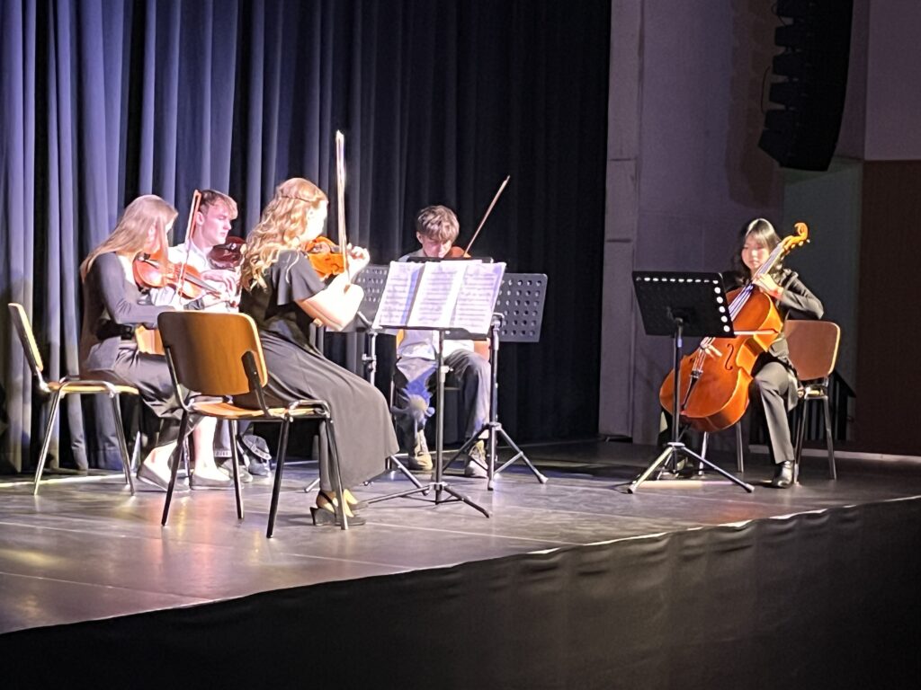Großes Können zeigte auch das HGV-Streichquintett mit Natalia Lednicka, Vincent von der Forst, Carolin Domke, Colin Weinstock und Sunwoo Yoo, das mit „Palladio“ überzeugte. Der Auftritt machte eindrucksvoll deutlich, was man durch viele Jahre kontinuierlichen Übens an den Streichinstrumenten erreichen kann – die Musikerinnen und Musiker spielten souverän und mit spürbarer Freude.