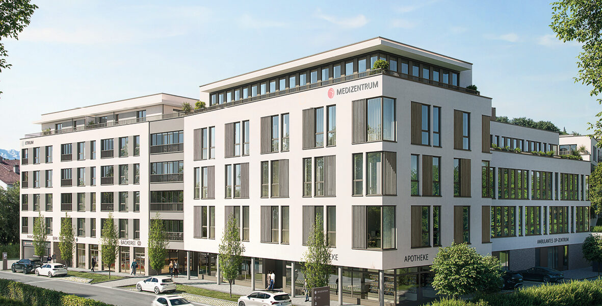 Im Zentrum steht das Ärztezentrum „Medizentrum“ mit rund 4.500 m² flexibel nutzbarer Fläche für Arztpraxen, therapeutische Angebote, ein ambulantes OP Zentrum und gesundheitliche Nahversorgung inklusive Apotheke. Bereits fix ist, dass das Zentrum für Orthopädie und Sporttraumatologie (ZOS) aus dem Klosterbauhof in den Neubau ziehen wird und dort dann auch den OP betreibt.